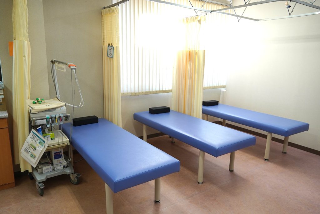 点滴や採血、心電図検査などを行います。カーテンで仕切れるようになっております。