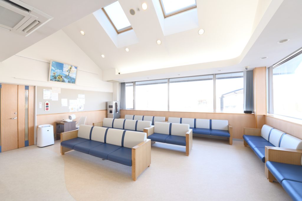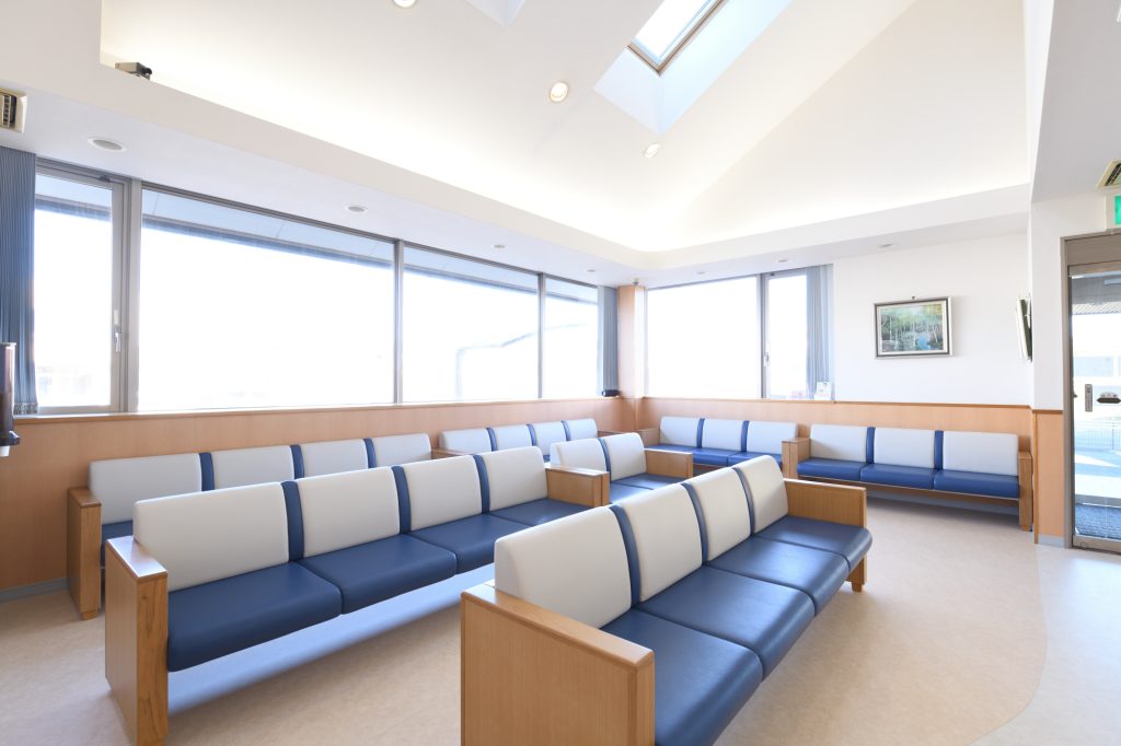 広々とした明るい待合室です。診察の順番になりましたら受付中央のモニターにてご案内致します。